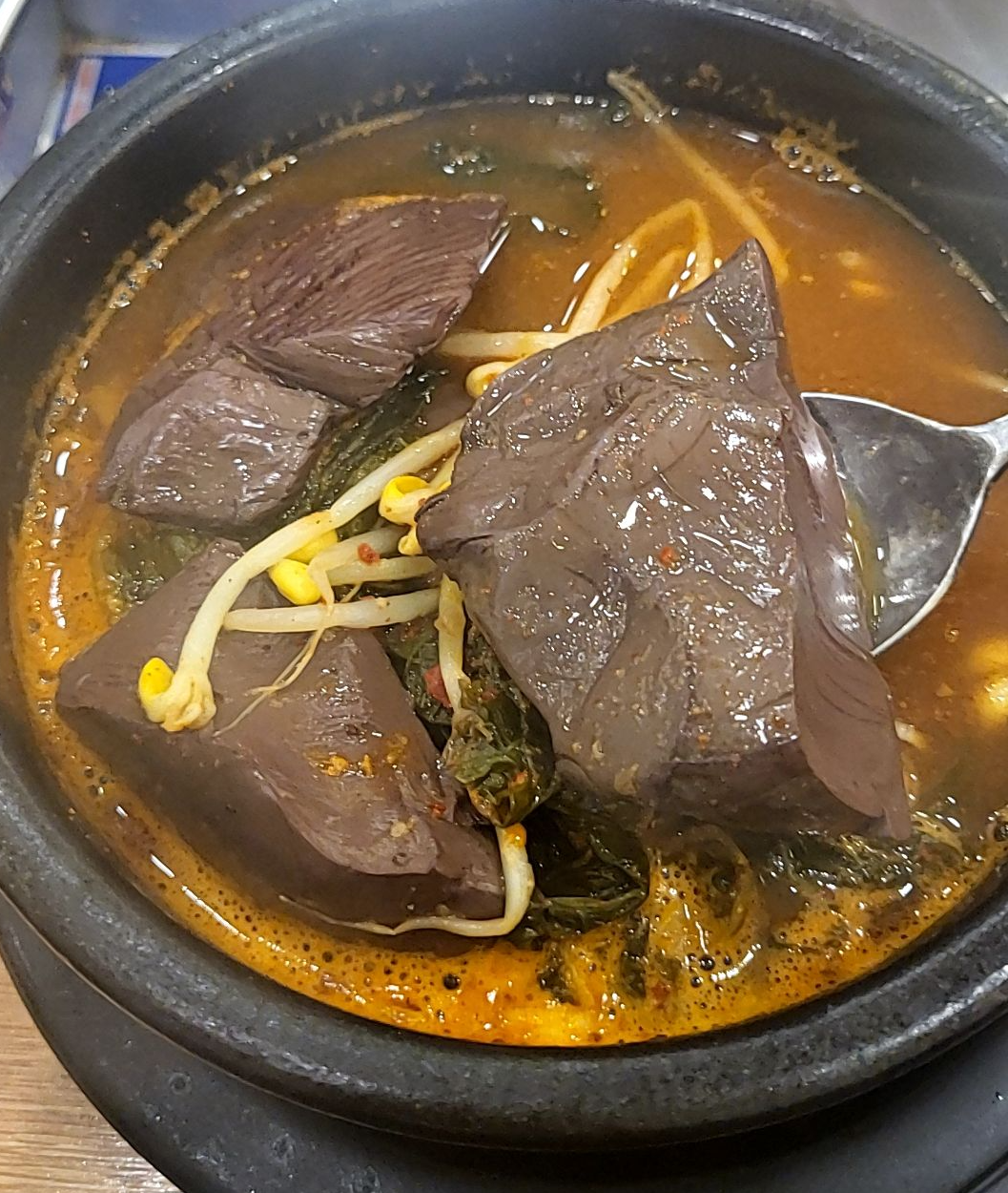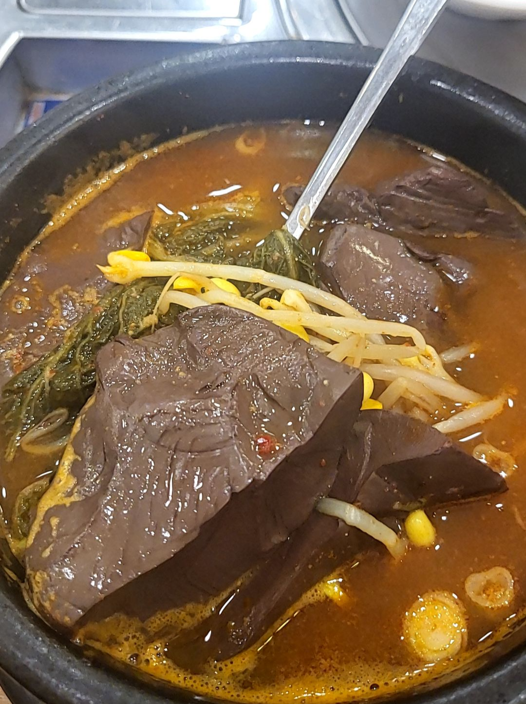 젤리같으면서도 씹을수록 고소한 선지의 매력. 선지는 고단백 저열량 식품으로 비타민A도 많이 함유되어 있어 건강식품 중에 하나! 빈혈이 있을때 먹어도 건강식품! 실제로 빈혈에 효능이 잇다고한다. 안 먹어봤다면 해장국으로 한번 도전해 보길 추천한다. 선지해장국을 먹다가 다시 소주를 주문할 수 있으니 주의바란다.