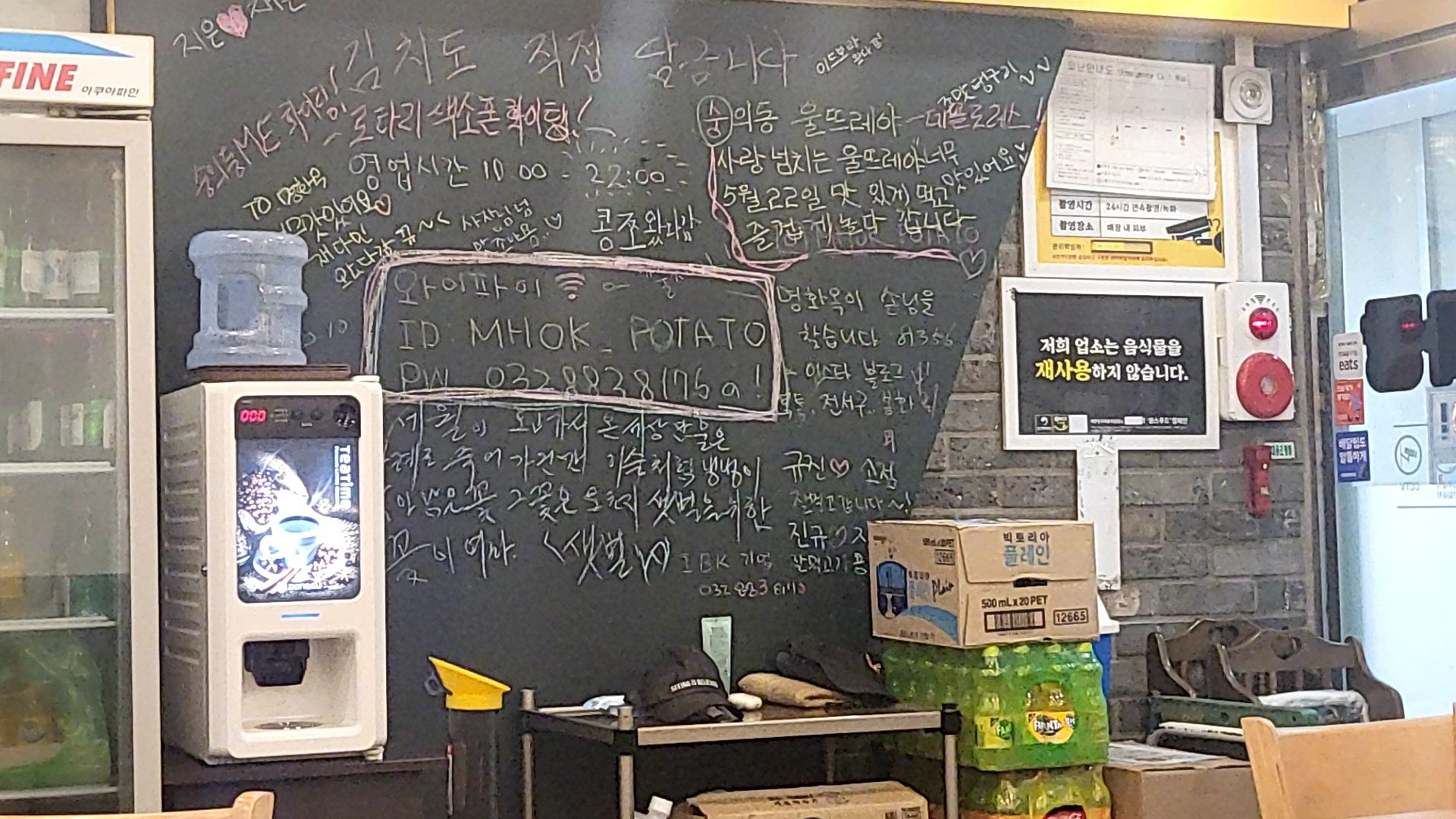 주문하고 매장을 둘러보니, 매장을 들어오면, 창가뷰에서 들어오는 채광이 매장을 화사하게 느끼게해주기도하지만 사장님께서 매장관리도 잘하셔서 깨끗한 매장에 테이블도 깔끔했다. 3층에 위치한 명화옥감자탕은 창가뷰 자리는 좌식으로 되어있어 4~6인 앉을 수 있는 테이블 2개 정도 있었다. 가족끼리 온다면 좌식자리로 가서 식사해야겟다. 그리고 매장에는 4인석 테이블 9개 정도 있어서 단체모임을 해도 괜찮을 거 같았다.