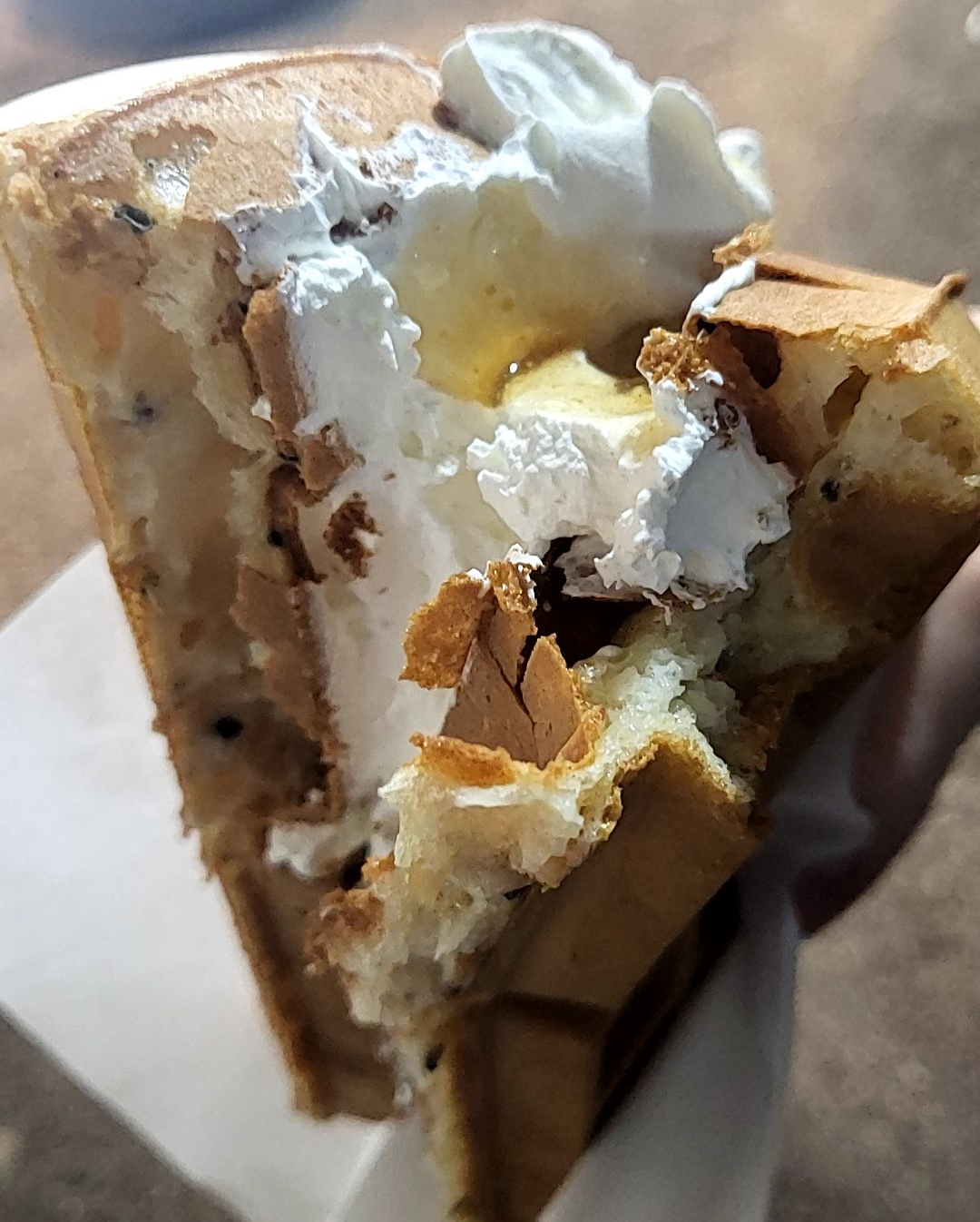 직접 와플뱅 와플을 먹어보니, 두툼한 와플에 고소한 우유생크림이 정말