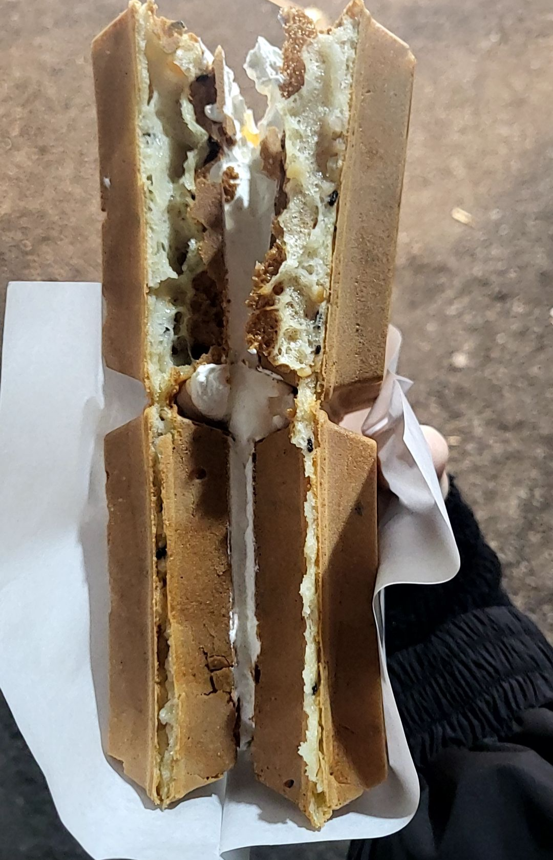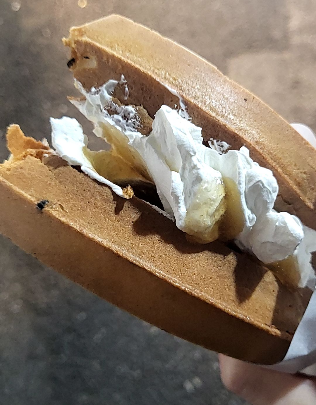 와플에 생크림이 적당하게 발려져 있어서 너무 맛있었다.