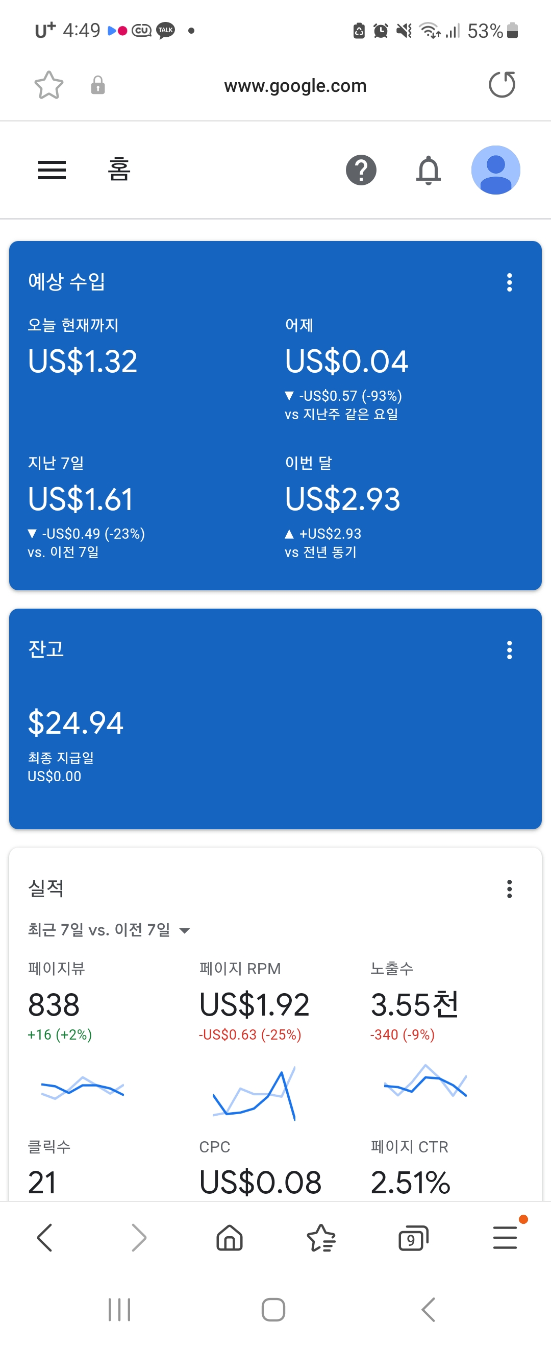 퇴근 후에 버숑 에듀 강의를 들으면서 알차게 시간을 보냈다는 것에 너무 뿌듯했고 틈날 때마다 글을 작성하니 글 쓰는 것이 부담스럽지도 않았다. 앞으로도 더 꾸준히 티스토리 글을 써서 수익을 더 높여봐야겠다!