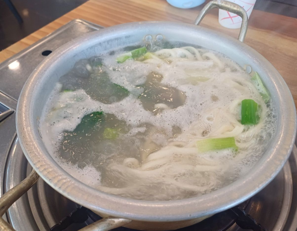 칼국수면이 부풀면, 식사하면 된다.