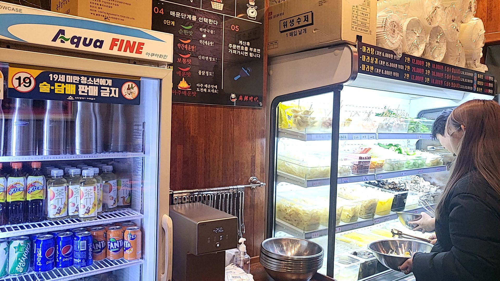인하대역 정문에 위치한 마라시대마라탕은 매장도 깔끔하게 관리되고 맛있는 마라탕을 판해하고 있어 금방 손님이 찬다.