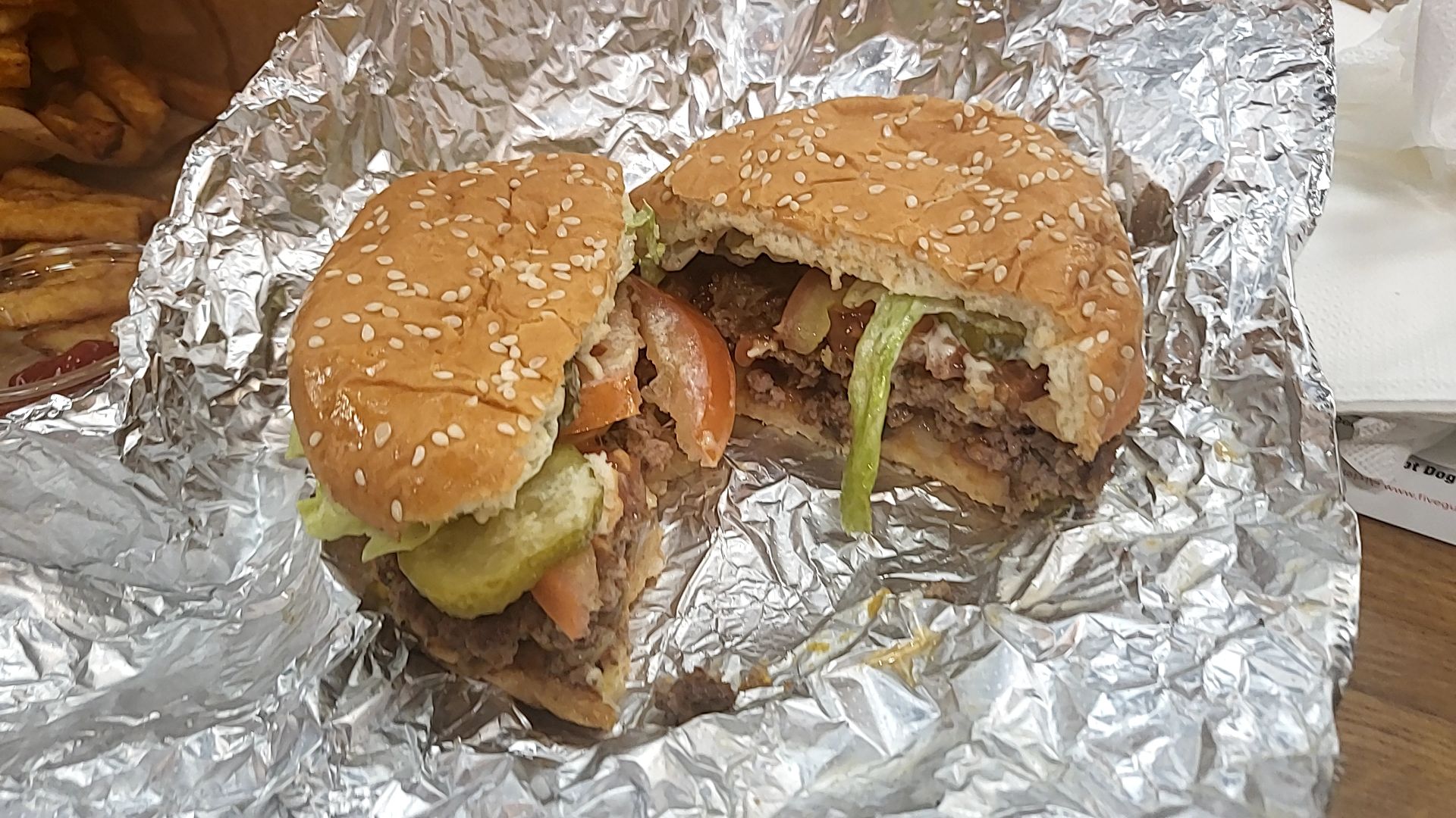 파이브가이즈 햄버거는 은박지에 싸주는데,