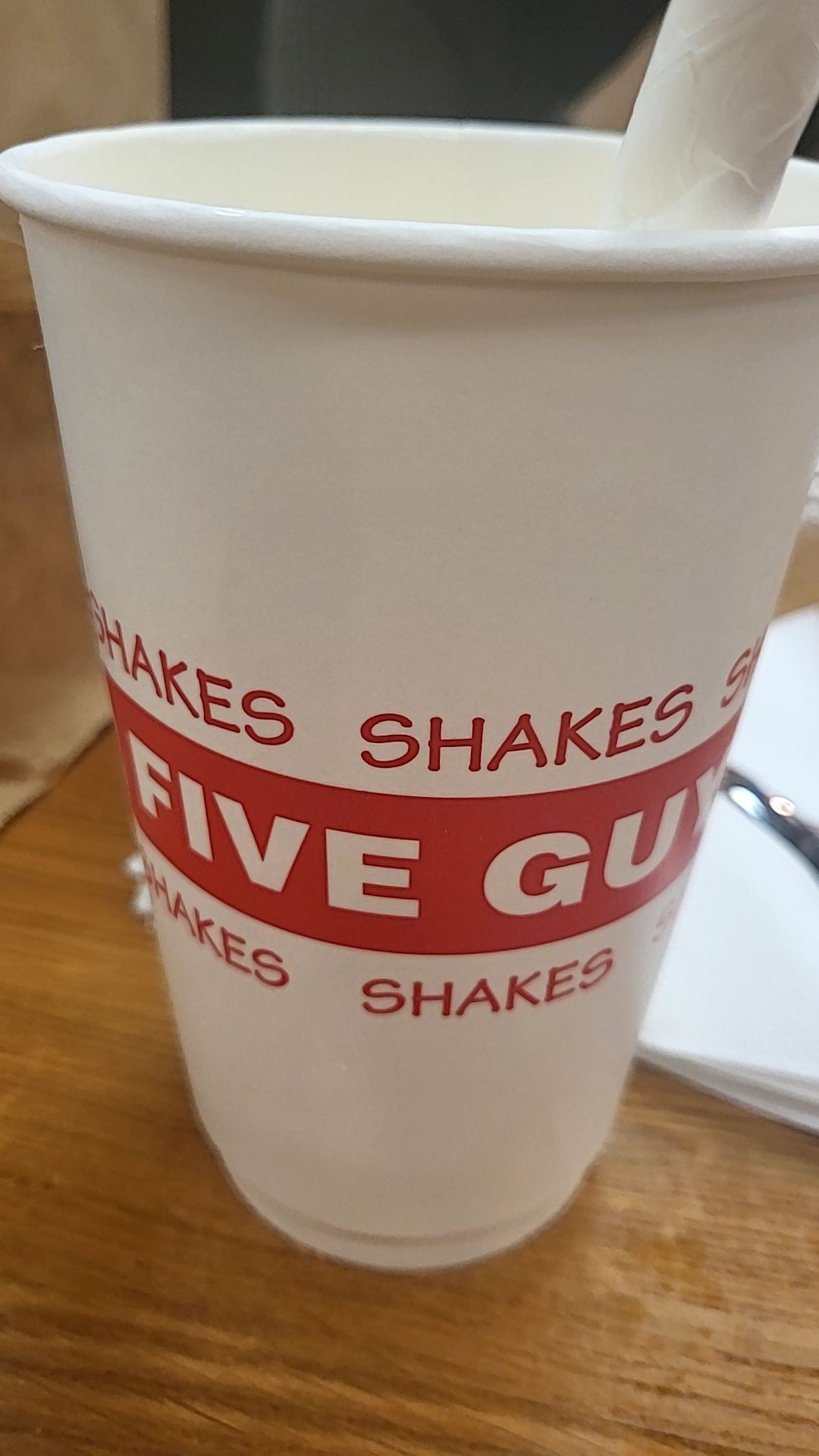 파이브가이즈 쉐이크는 8,900원이라는 비싼 가격에 비해 맛은 아쉬움이 남는다.
