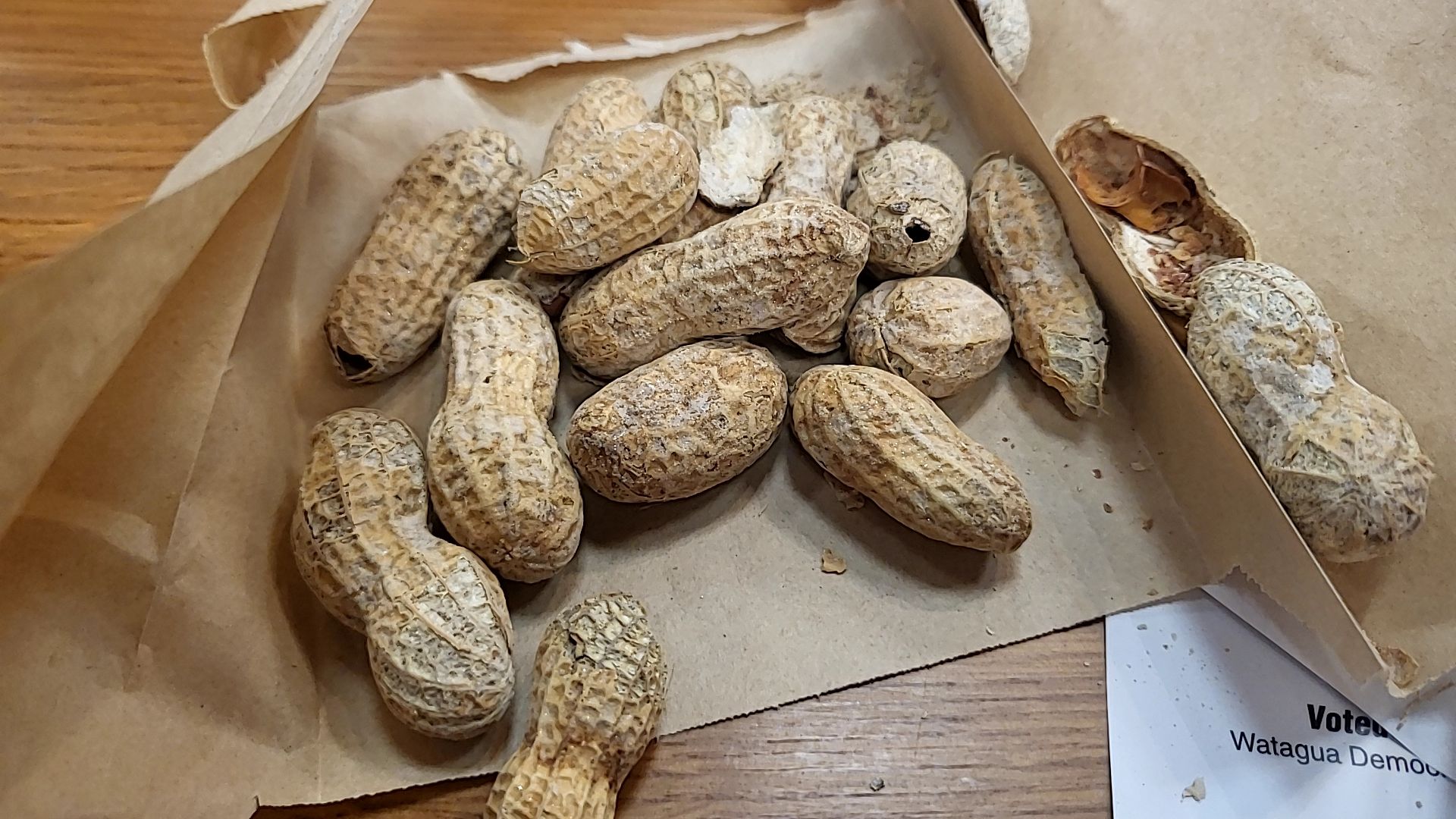 아마 땅콩에 소금양념이 잘 베이게 하기 위해서 일부러 부숴놓은 거 같다.