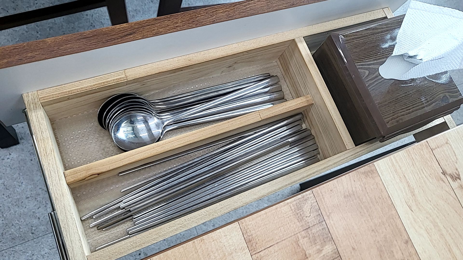 반찬은 깍두기와 배추김치 무한리필. 원하는만큼 덜어먹을 수 있다.