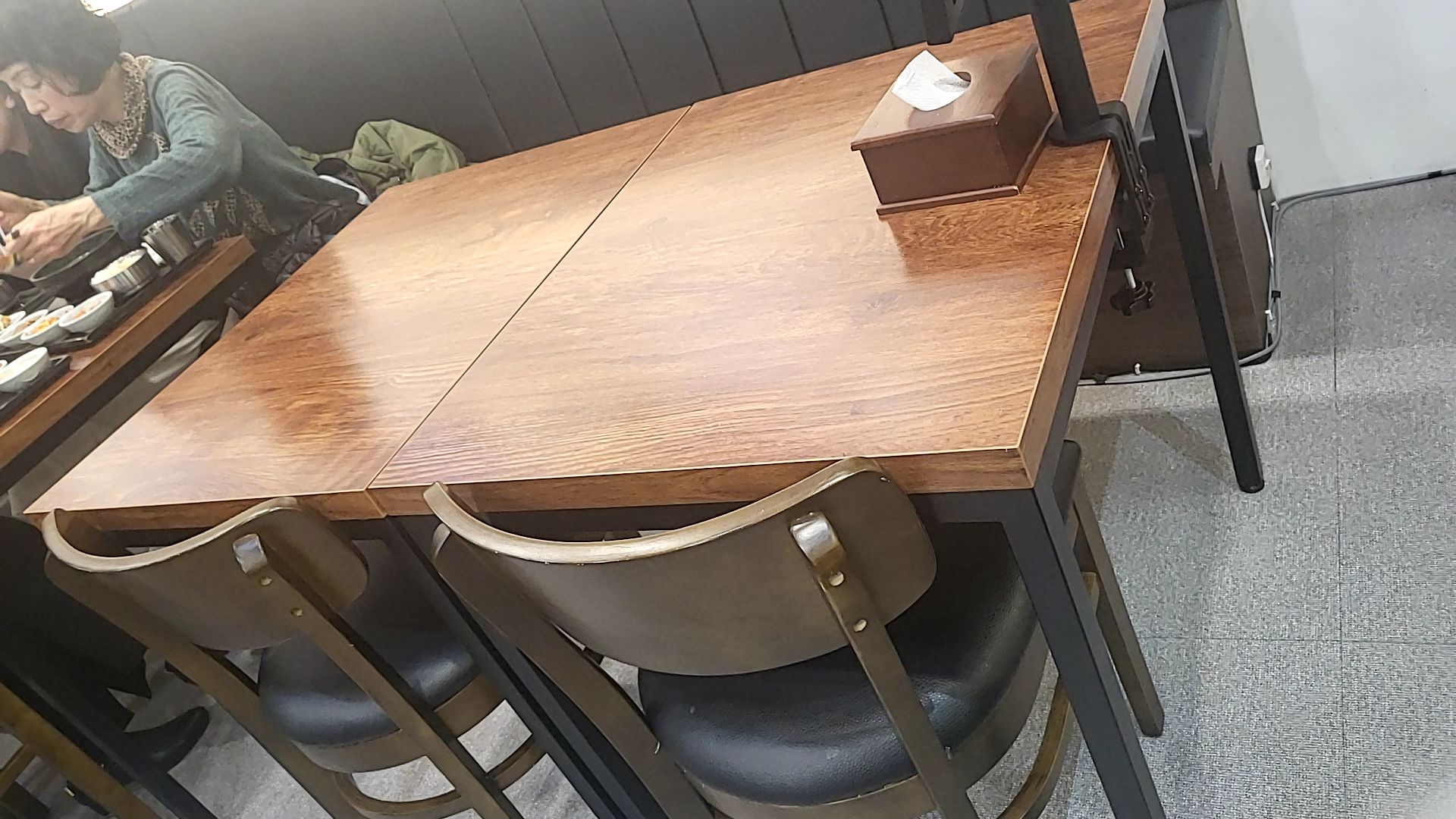 테이블과 의자는 우드톤의 깔끔한 모던느낌이고 테이블에는