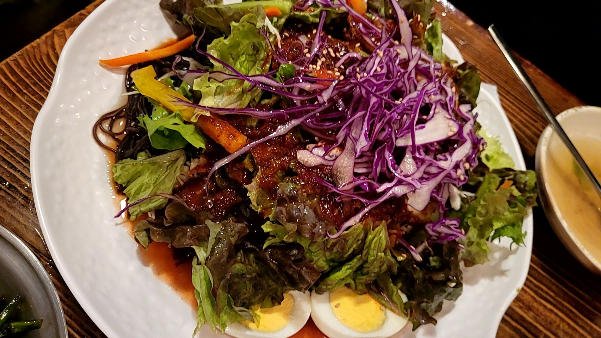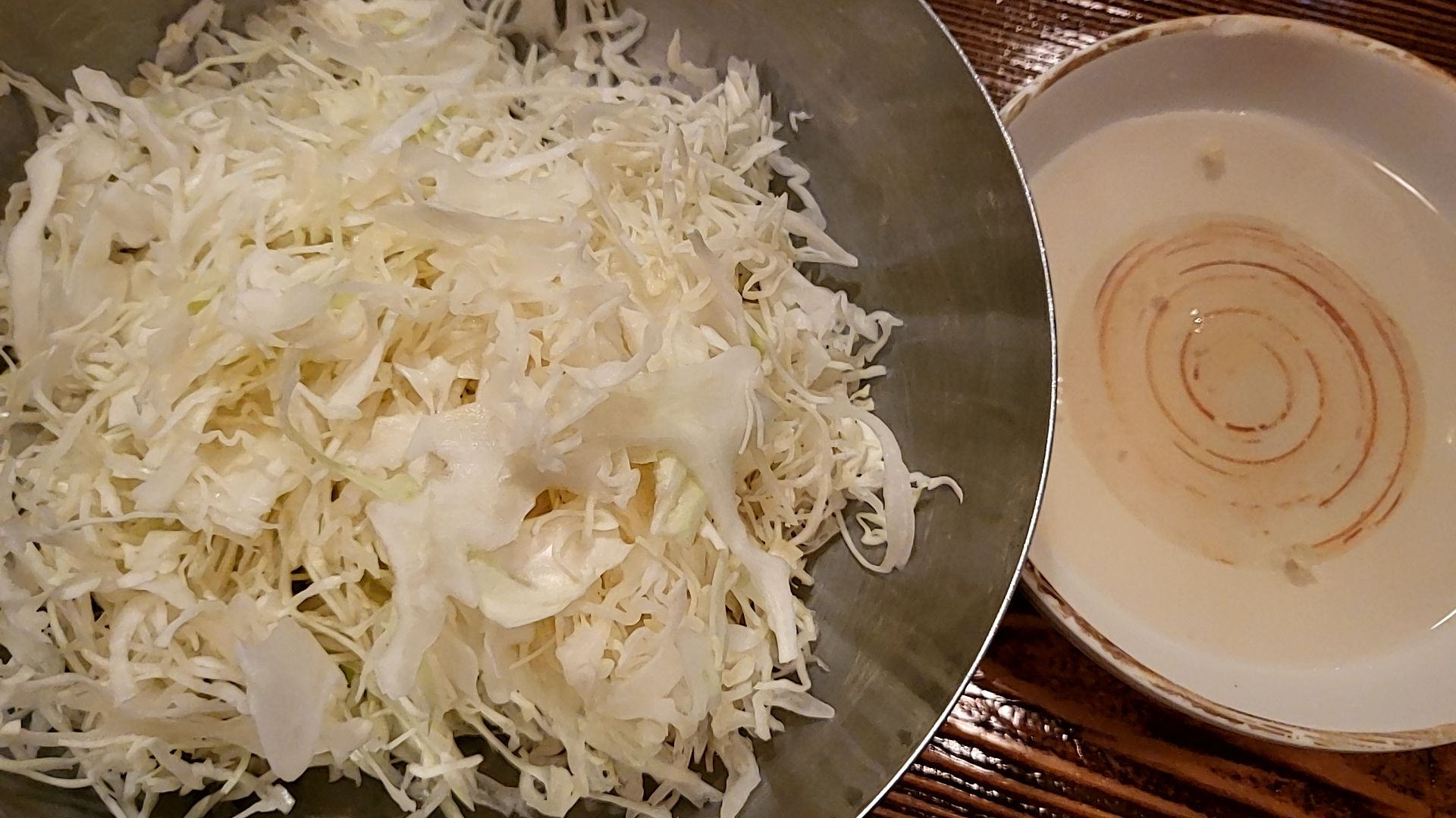 양배추샐러드가 따로나오고, 특제소스와 같이 먹는 샐러드이다.