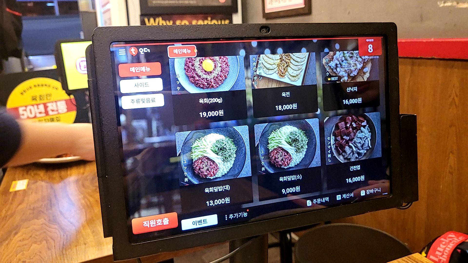 각 테이블마다 태블릿이 잇어서 주문을 하고
