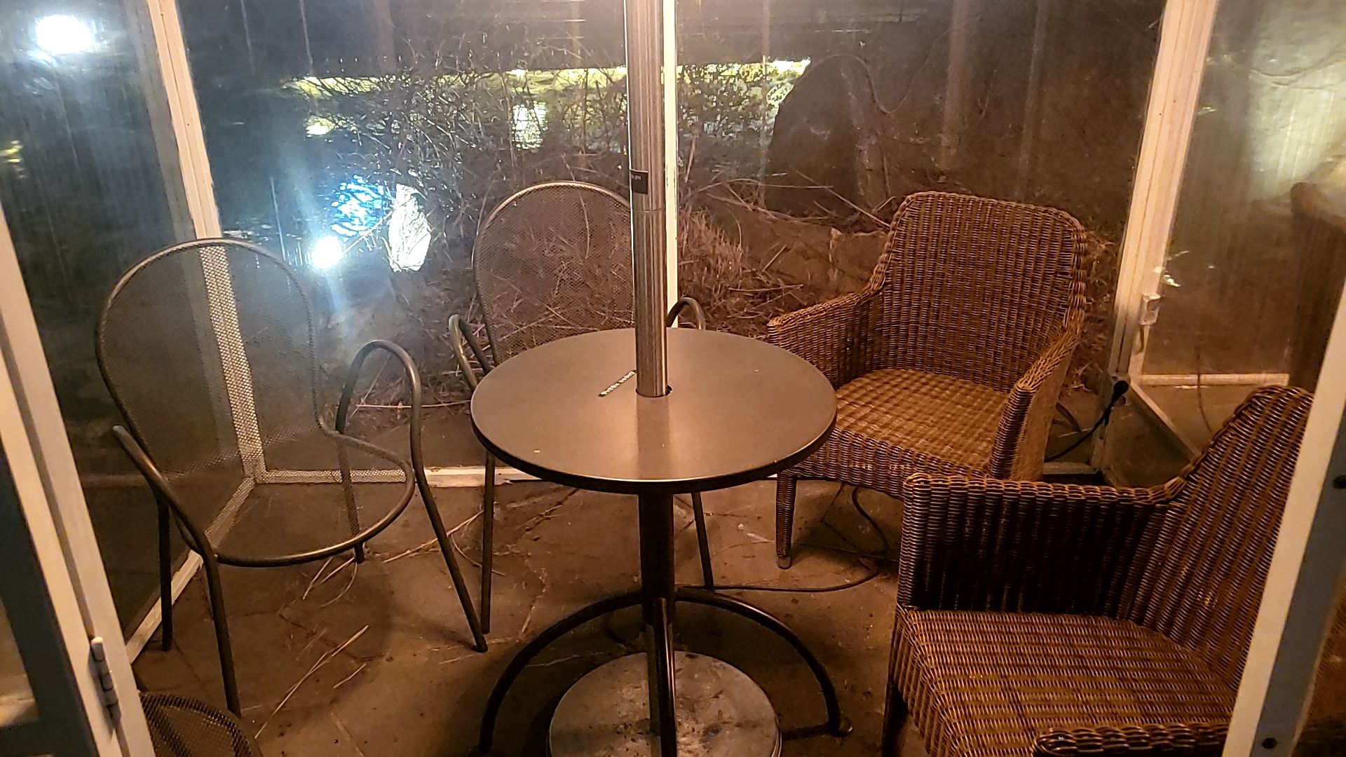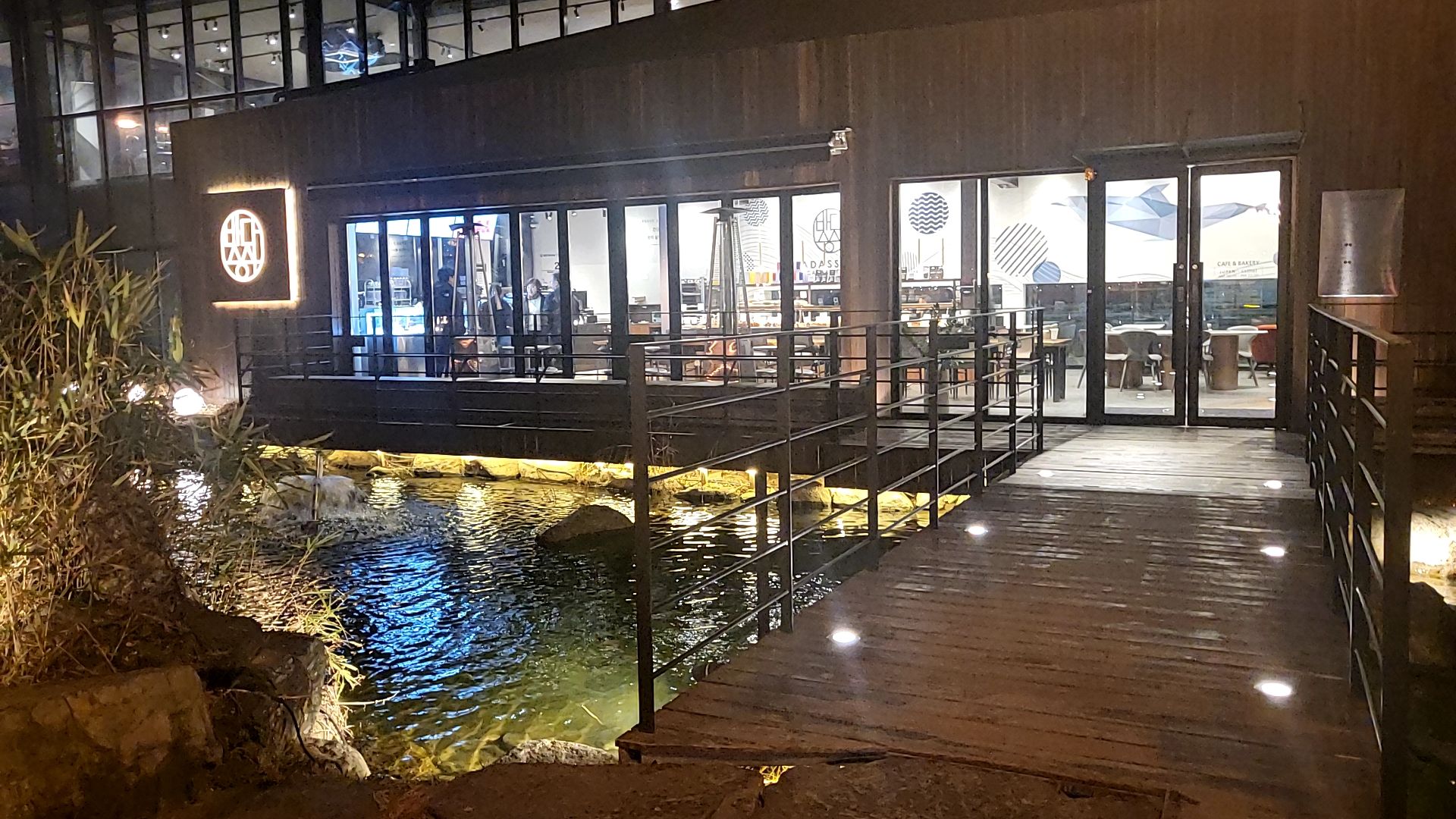 연못에 녹조도 없이 깨끗했고 온실테이블도 따뜻하고