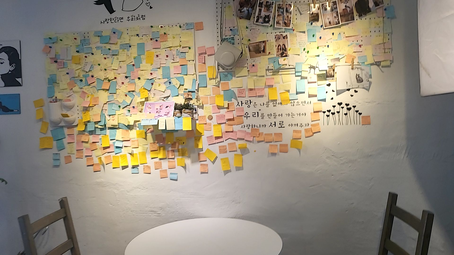 포스트잍으로 흔적을 남길 수 있는 공간이 있고,