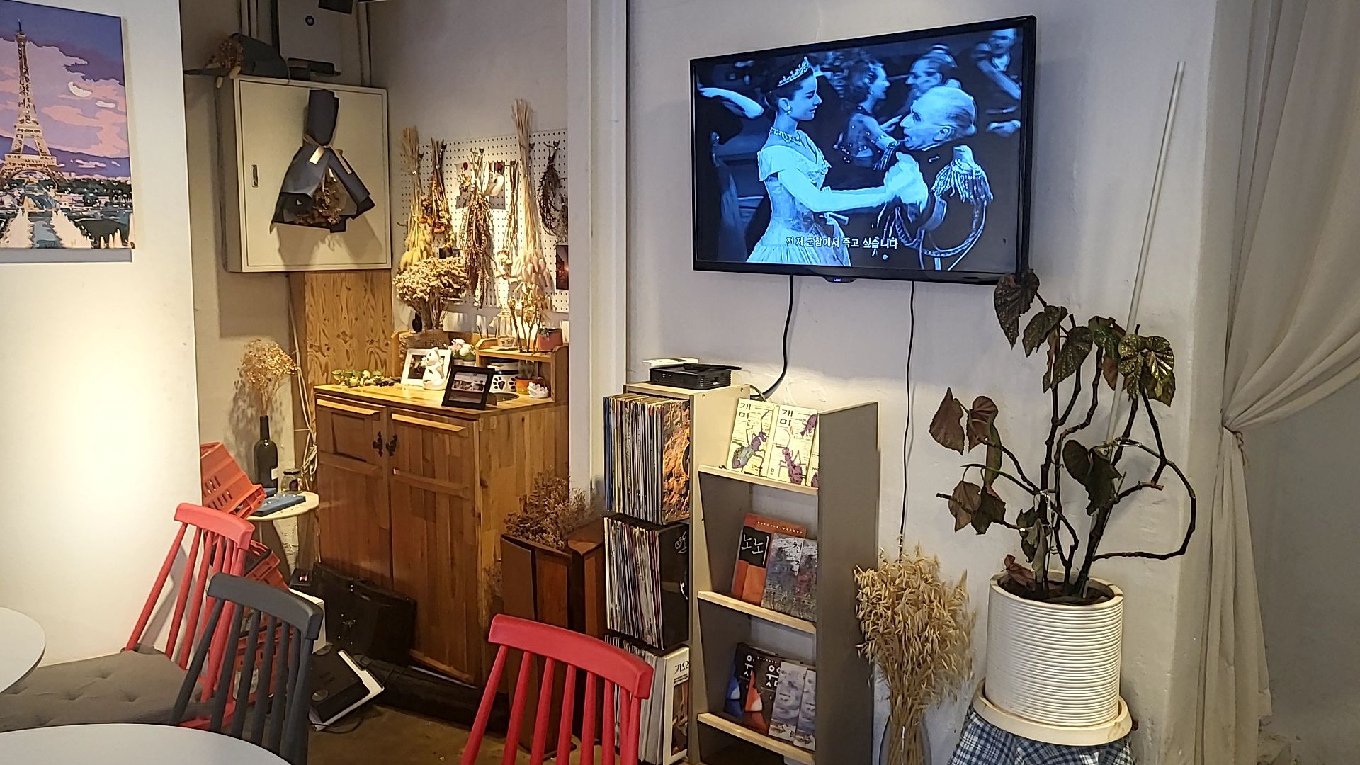 벽면에는 레트로한 포스터,