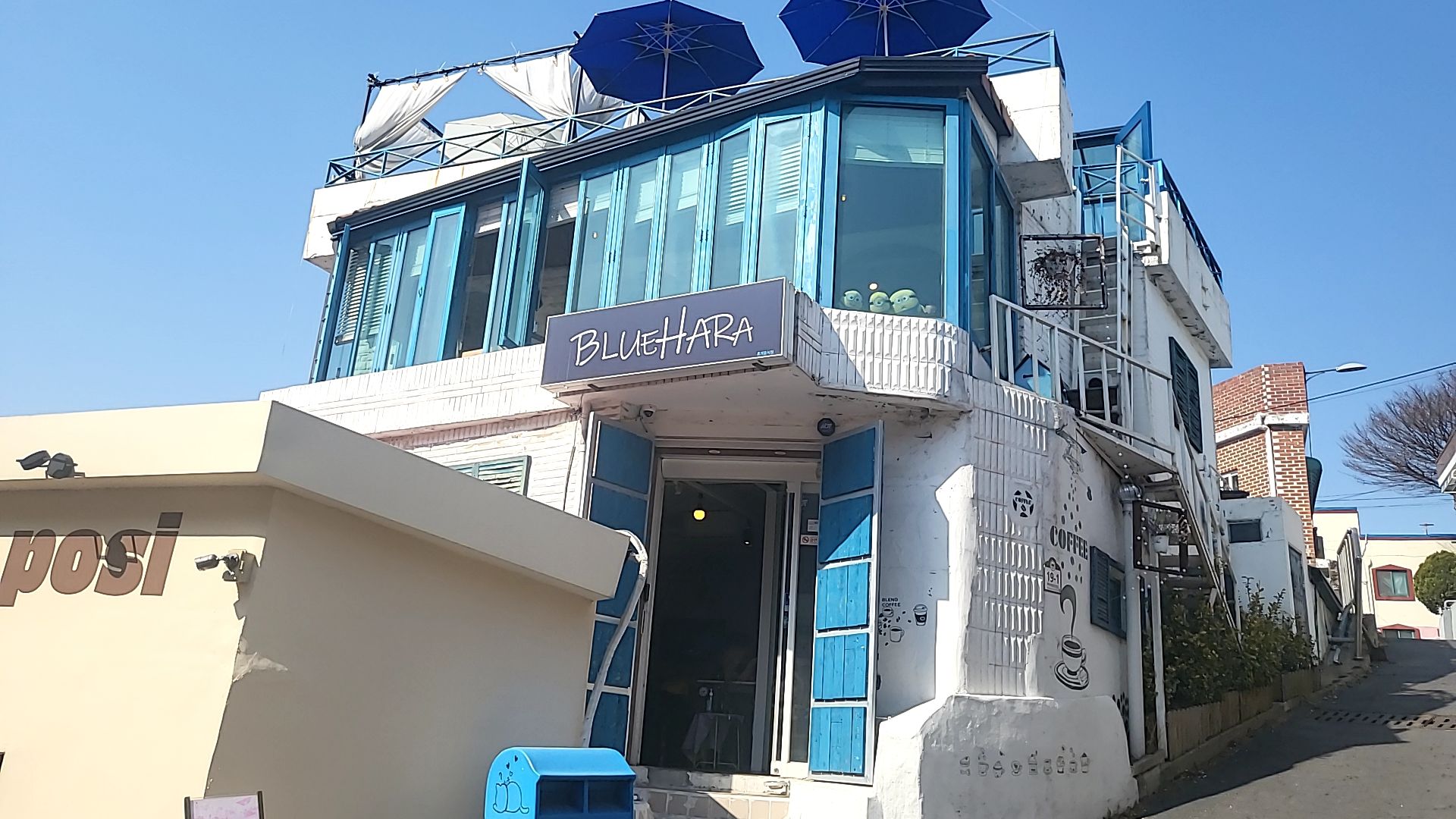 카페 파란색 외관이 너무 이쁜 블루하라 카페.