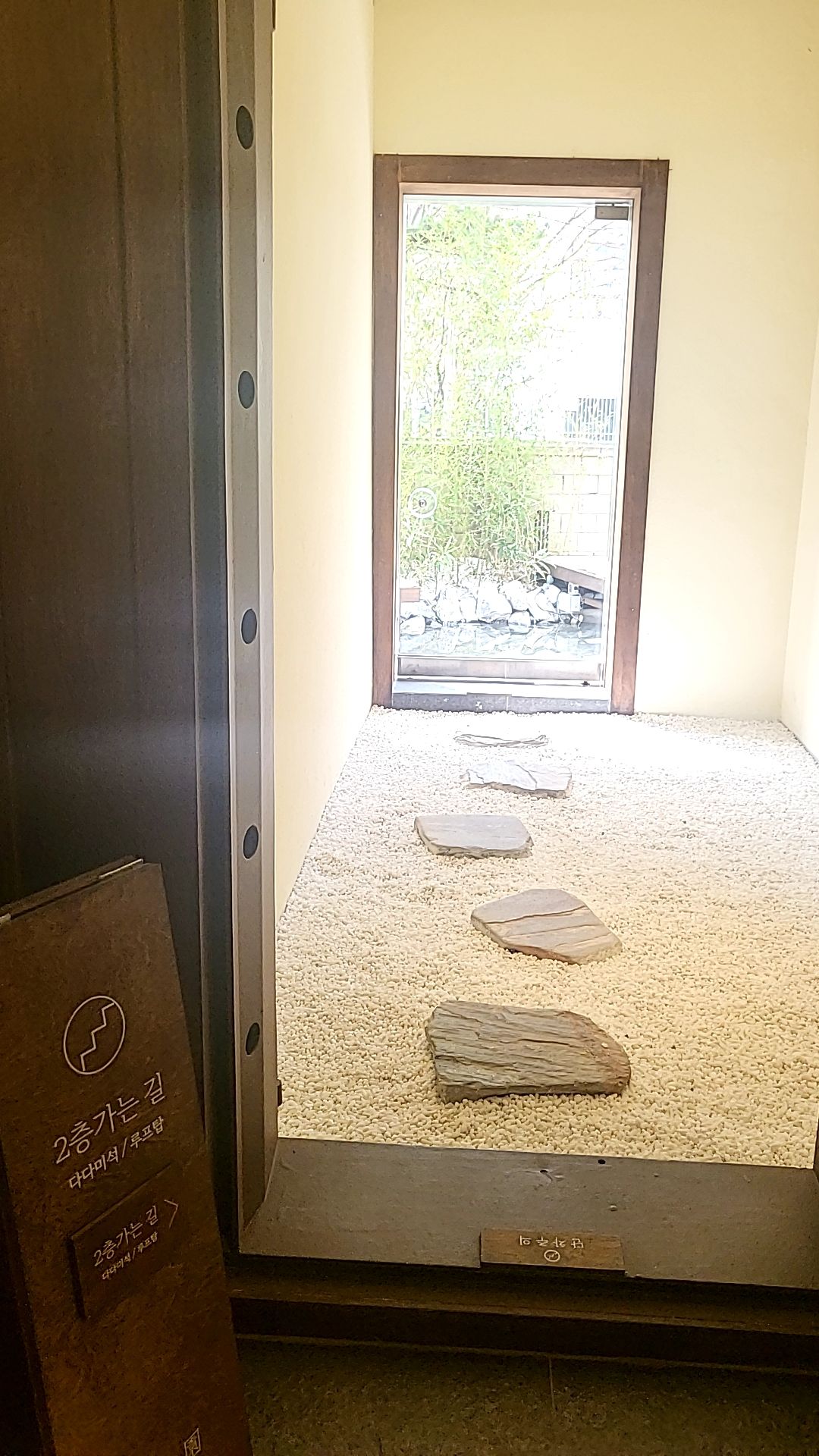 이쁜 하얀조약돌을 밟으며 통로를 지나가면