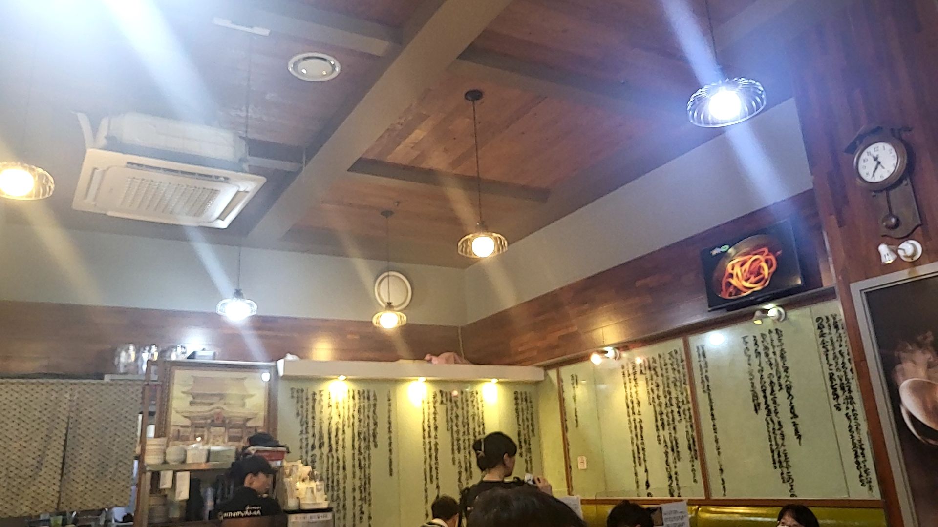 내가 방문한 날에는 11:30 오픈이라고 하셨는데 32분에 1-5팀을 부르기 시작해서 오픈했다. 30분에는 26팀이 대기하고 있었다. 입장은 5팀씩 입장하는데 먼저 주문하는 순서대로 음식이 나온다. 주문이 들어가면 그때 면을 삶고 조리하기 때문에 음식 나오는데 시간이 좀 걸린다고 한다. 매장 안은 에어컨 빵빵 시원했다. 매장은 아담한 편, 왼쪽에 제면실이 있고,코로나가 다시 재유행이라고 하는데 칸막이가 설치된 있어서 좋았다.