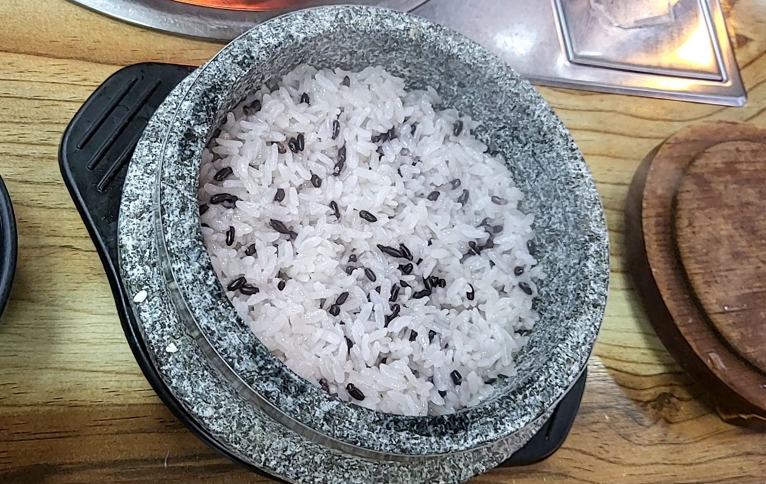 돌솥밥이 끓는 시간이 있어서 소요시간 15분 정도 걸린다고 한다.건강한 쌈채소에 돌솥밥까지, 돌솥밥에 나오는 쌀은 윤기 잇고 찰기가 있어 더 고슬고슬하고 맛있다. 돌솥밥 먹고 나중에 물 부어서 먹는 누룽지 사랑합니다