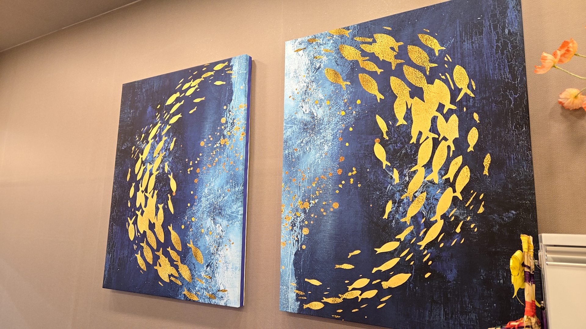잉어그림이 걸려있고 책도 가득 있었다.