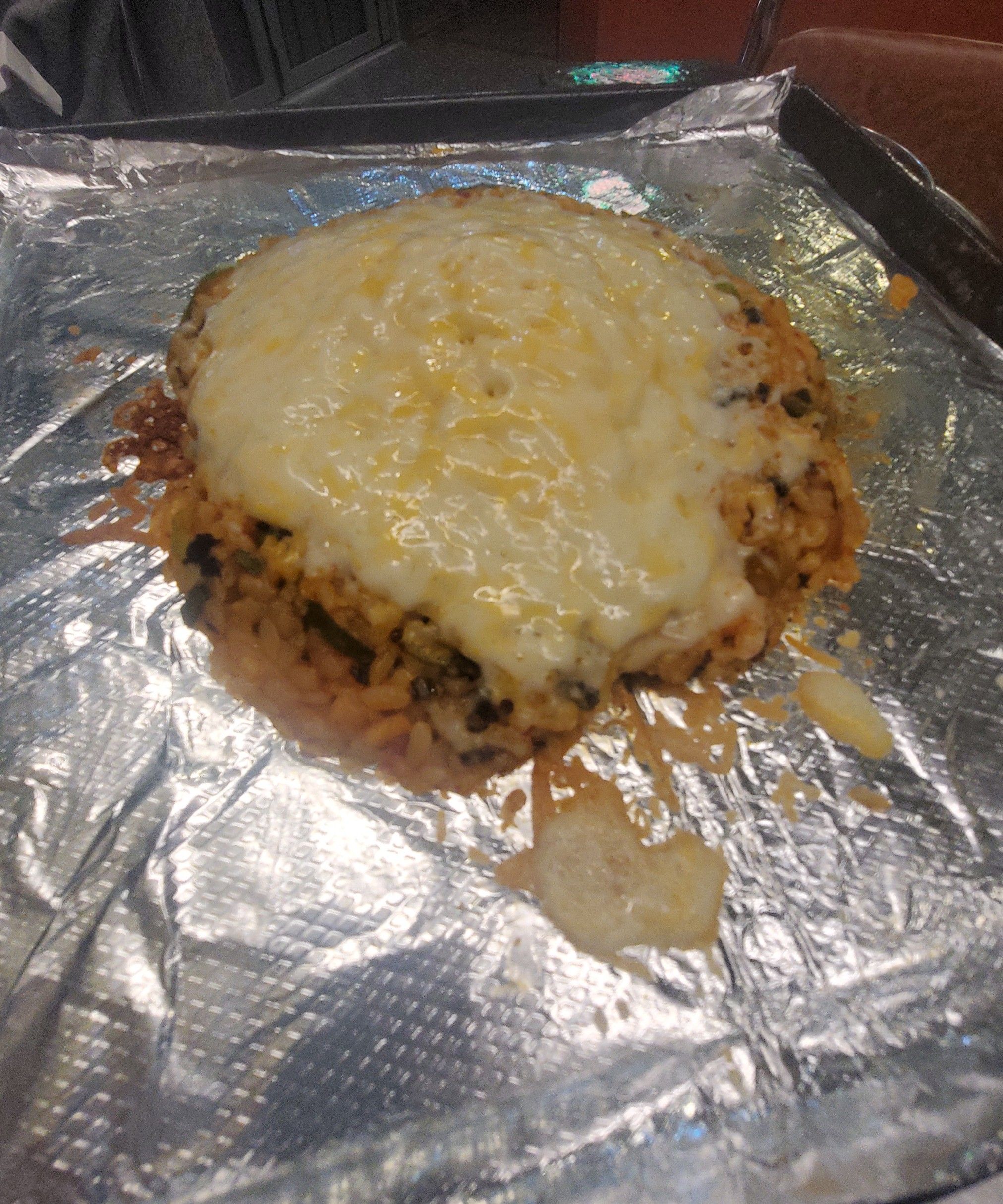 눈꽃치즈볶음밥으로 마무리~ 볶음밥을 시키면 새 호일로 갈아주신다. 이름처럼 진짜 모차렐라치즈와 체다치즈가 눈꽃처럼 얇은 치즈여서 볶음밥에 골고루 스며들었다. 치즈가 얇아서 더 부드러울 거 같았다. 볶음밥은 직원분이 직접 볶아주신다. 치즈가 녹도록 뚜껑으로 덮어주시는데, 뚜껑을 열고나면 제대로 녹은 향긋한 치즈향기와 너무 먹음직스러운 비주얼! 너무 박박 긁어먹다가 포일까지 먹을 수 있으니 조심조심