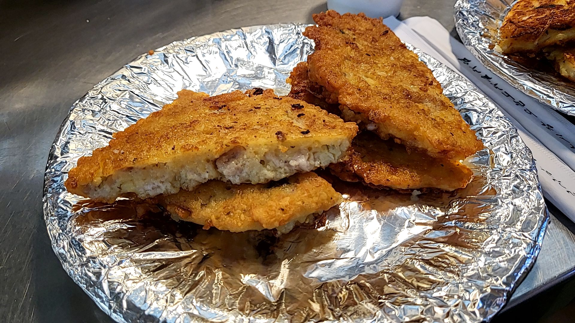 구경하다 보니 친구가 도착했다고 연락한 것도 보지 못해서, 시장 중앙에서 만나기로 했다.