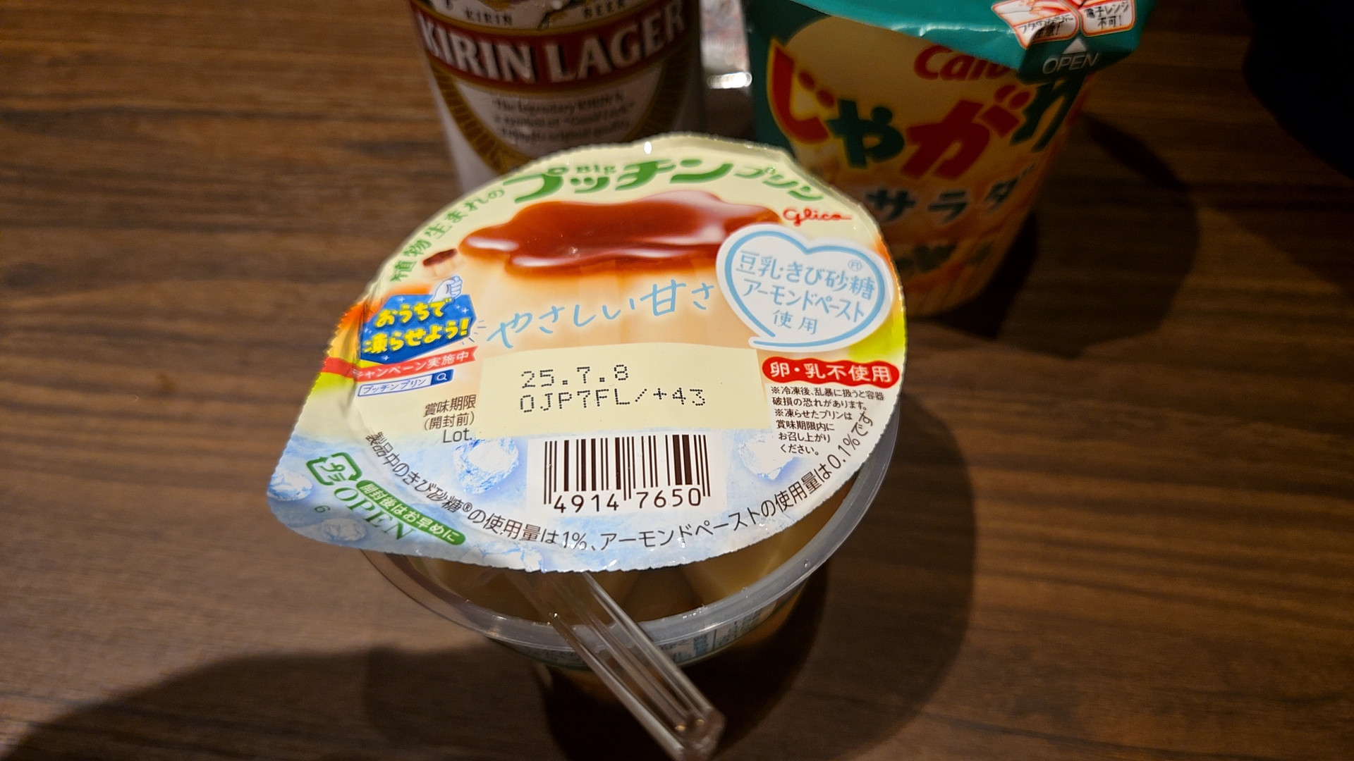 푸딩과 기린 맥주를 더 사서