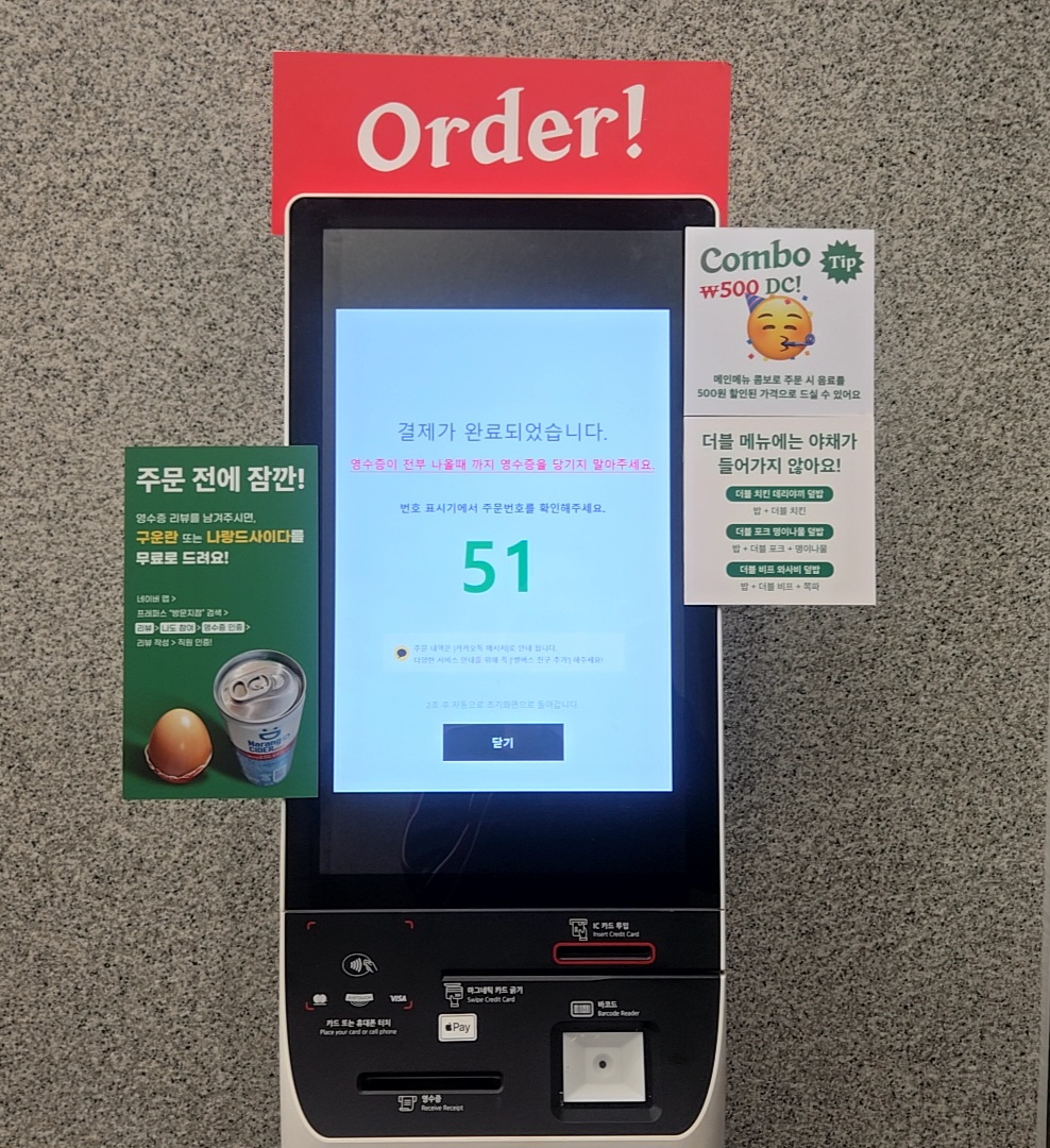 - 메인메뉴 콤보로 주문 시 음료 500원 할인.