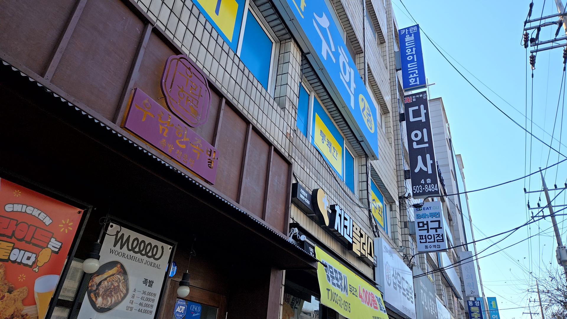 계단으로 건물 4층 올라가면, 철학관이 보인다.