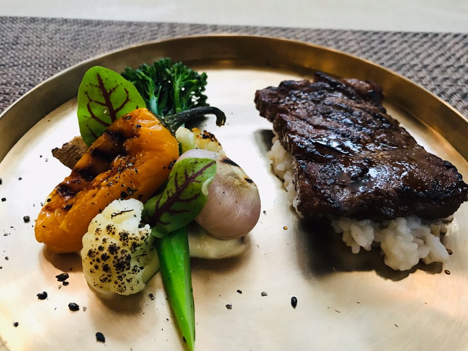 브로콜리, 마늘, 양송이버섯, 컬리플라워, 미니파프리카 야채들은 거의 간이 안되어있어서 소갈비와 함께 먹으면 조화가 잘 맞는다. 먹음직스럽게 구워진 소갈비 밑에는 으깬 감자와 섞인 밥이 갈비 밑에 깔려있다. 부드러운 메쉬포테이토에 소갈비와 궁합이 잘 맞았던 거 같다. 야채도 다양하게 나오니 두레유의 음식들은 맛있기도 하지만 눈으로 보기만 해도 배가 부른 매력이 있다.