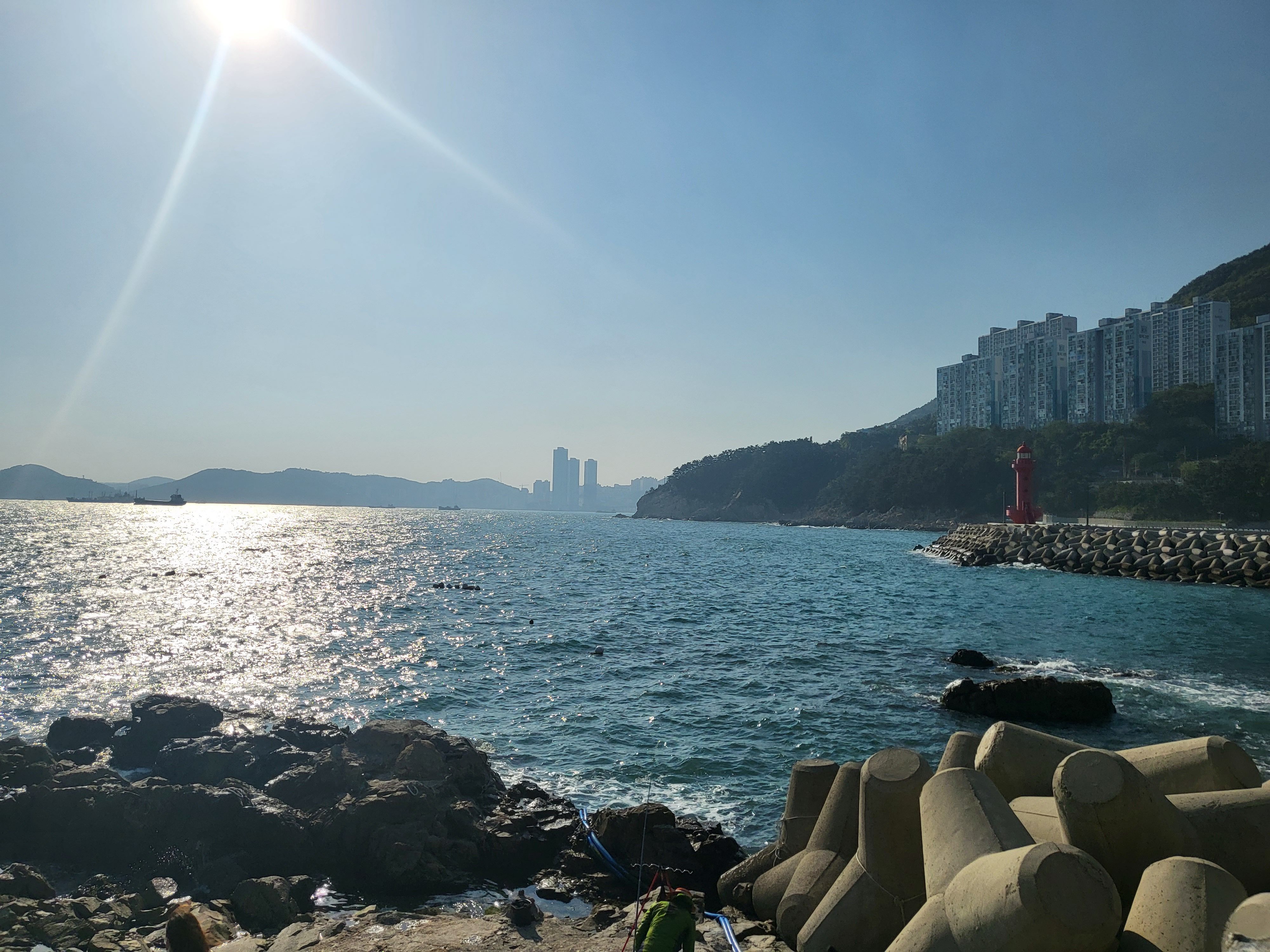 1시간쯤 버티다가 , 바람이 너무 세게 불었다. 김밥도 점점 차가워지고ㅠㅠ 바람이 많이 불기도하지만 세기가 센 데다가 햇빛가리개가 없어서, 사진 찍기 좋은 포토존이긴 하지만, 술 먹으면서 오래 있기에는 바닷바람에 얼굴이 탈까 봐 걱정이 슬슬 됐다. 영도해녀촌에서 바라보는 바다는 너무 아름답고 파도소리도 힐링 그 자체였다. 아름다운 영도 바다를 보면서 술 마시고 계속 멍 때리면서 보고 싶었지만, 해가 지니깐 바람이 점점 세졌다. 플라스틱 의자가 넘어져서 여기저기 날아다닐 정도여서 바람이 너무 세었다. 선크림 꼭 바르고 가길 추천한다. 그리고 바람이 많이 불어서 라면이나 음식들이 금방식 어서 아쉽기도 하다. 더 이상 있으면 바람이 더 세질 거 같아서 아쉬움을 뒤로한 채 택시를 타고 다시 해운대로 넘어왔다.
