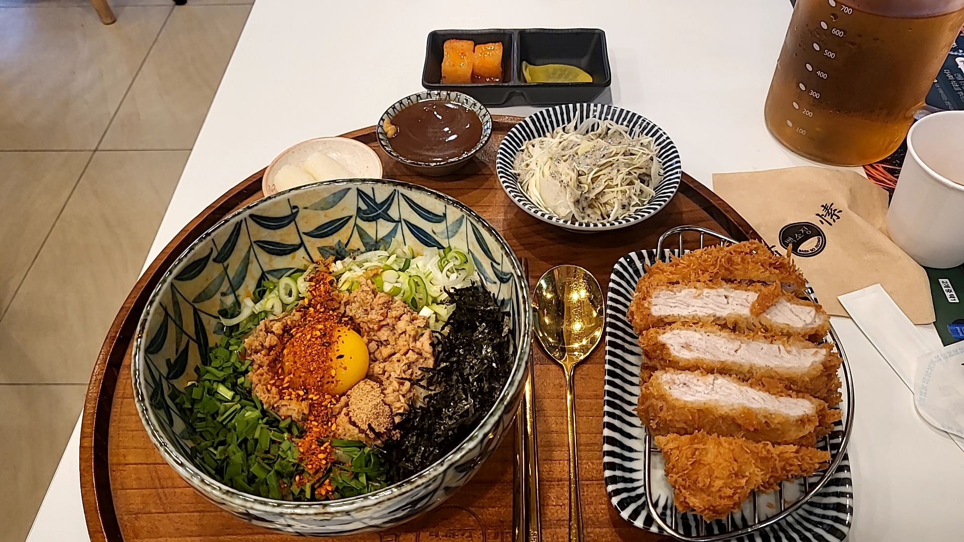 백소정에서는 가성비메뉴 마제소바+ 돈카츠 14,900원을 주문했다.