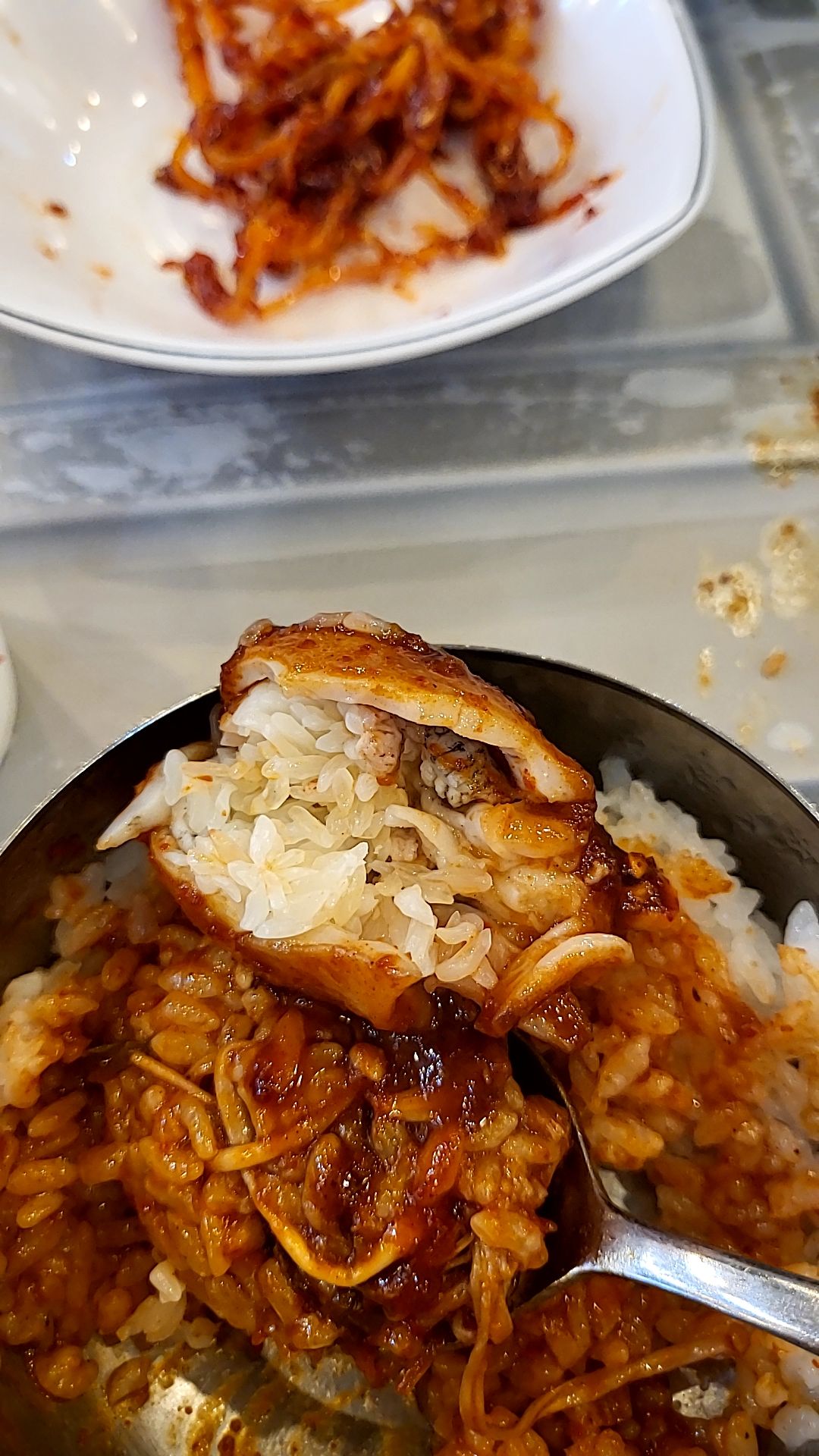 쭈꾸미 볶음은 야채도 신선하고 쭈꾸미도 알이 꽉 차서 너무 맛있었다. 쌀밥에 비벼서 먹으면 정말 밥도둑이 따로 없다. 고추장색깔이 매워 보이는데, 한두 입은 안 맵다가 먹을수록 매워진다. 맵긴 하지만 맛있게 맵다. 쭈꾸미를 맵게 하는 이유를 알 거 같다.