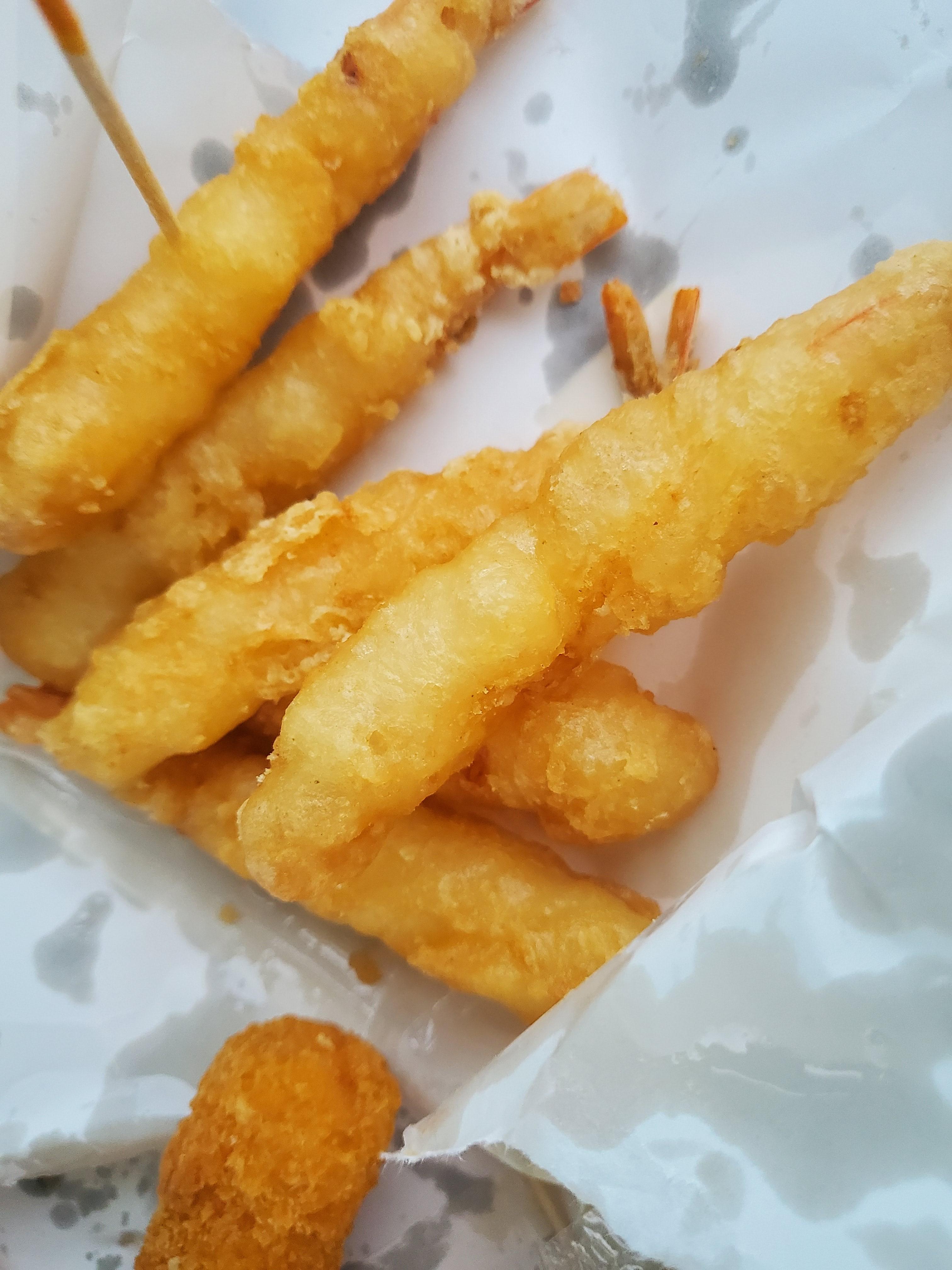 동해바다 보고 맥주 한 모금 마시고, 동해바다 파도소리와 맑은 물색깔 그리고 짭짤한 바다내음까지 동해를 맘껏 즐겼다. 걸어서 물치항회센터 옆에 푸드트럭에서 게살튀김 판매하시길래 게살튀김을 사 갖고 먹었다. 금방 튀겨서 그런지 바삭바삭하고 너무 맛있었다. 맥주 안주로 딱!