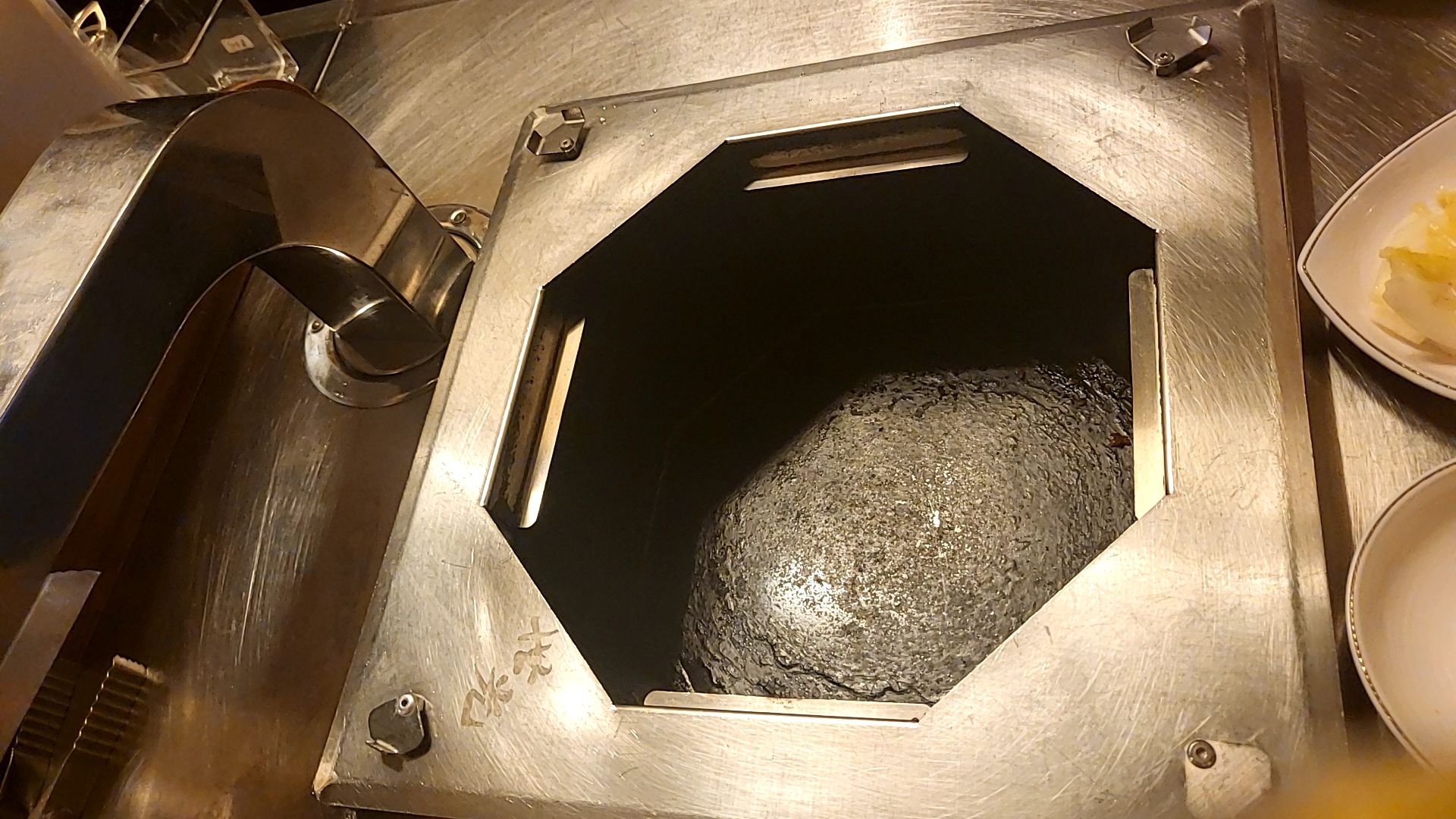 수도꼭지처럼 생긴, 냄새를 빨아들이는 환풍기가 바로 옆에 있어서 연기가 너무 잘 빨려 들어가는 모습이 신기해서 찍어본다. 세광양대창 환풍기는 흡입력이 아주 좋다.