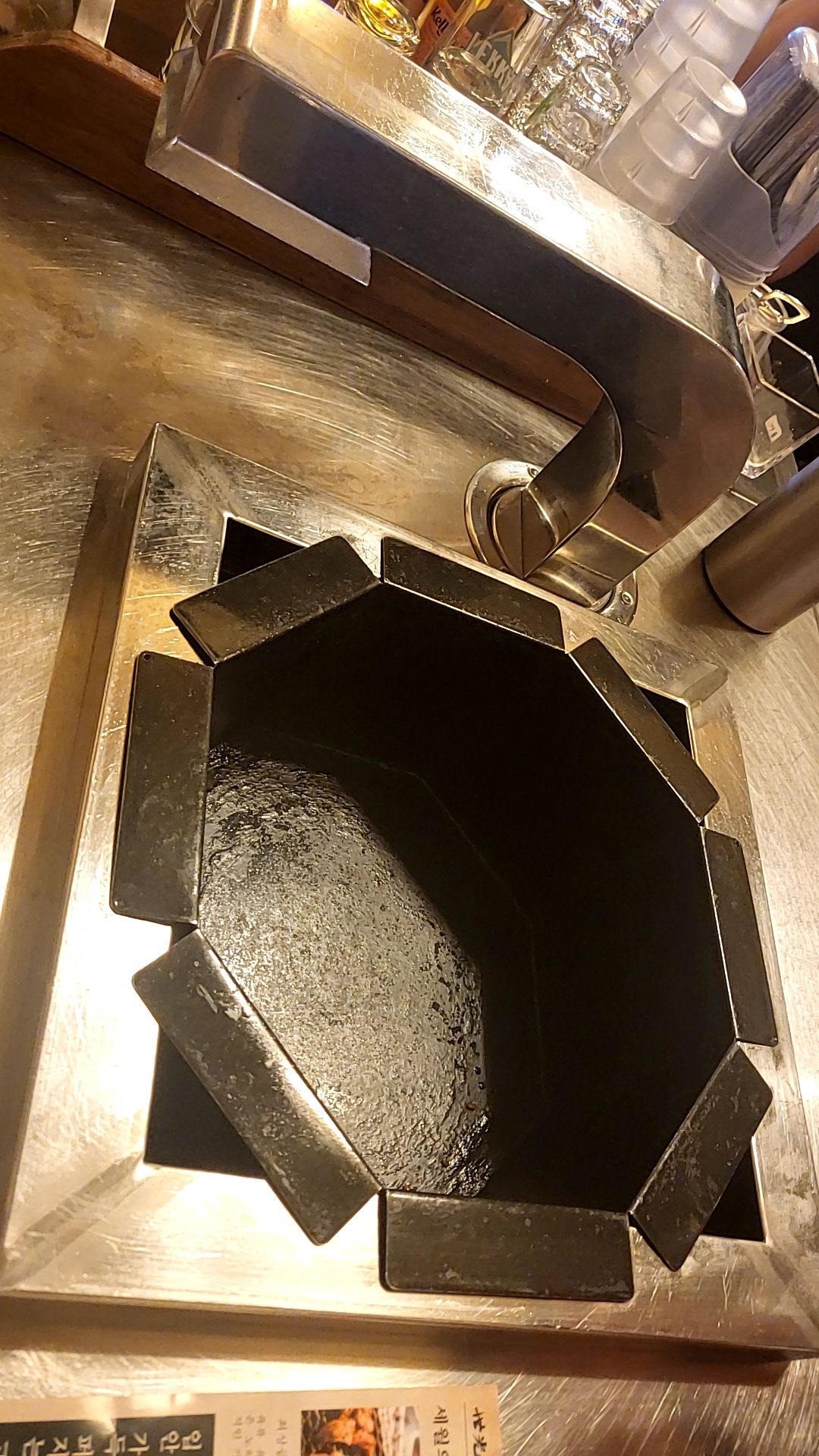 세광양대창 안양범계역점의 화구는 육각형모양의 화구로 되어있다. 연기를 빨아들이는 화구도 바로 옆에 있고, 테이블이 전체적으로 깨끗하다. 세광양대창은 직원분이 직접 구워주셔서 편하게 먹기만 하면 된다.
