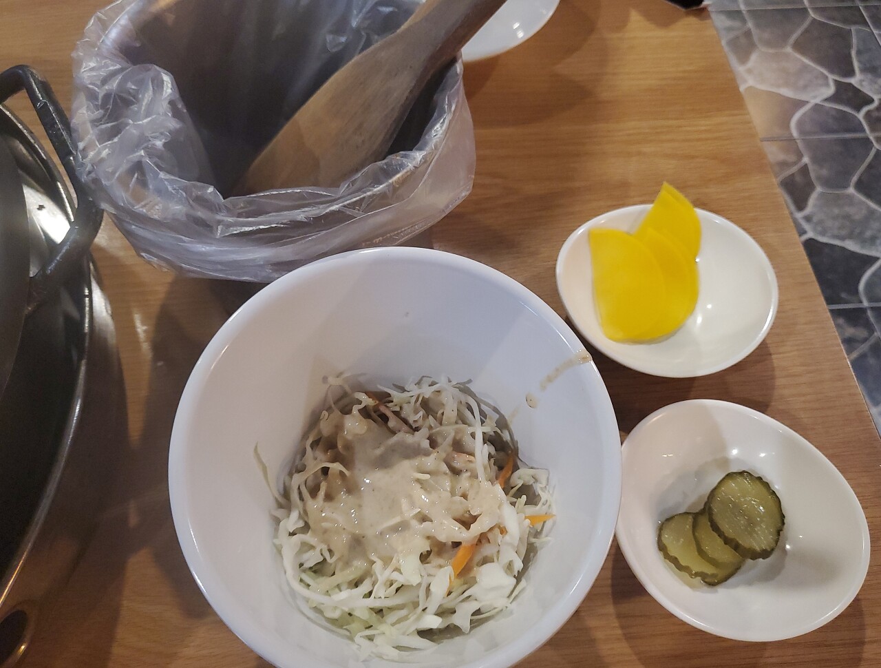 반찬 셀프바가 있어서 샐러드 피클 등은