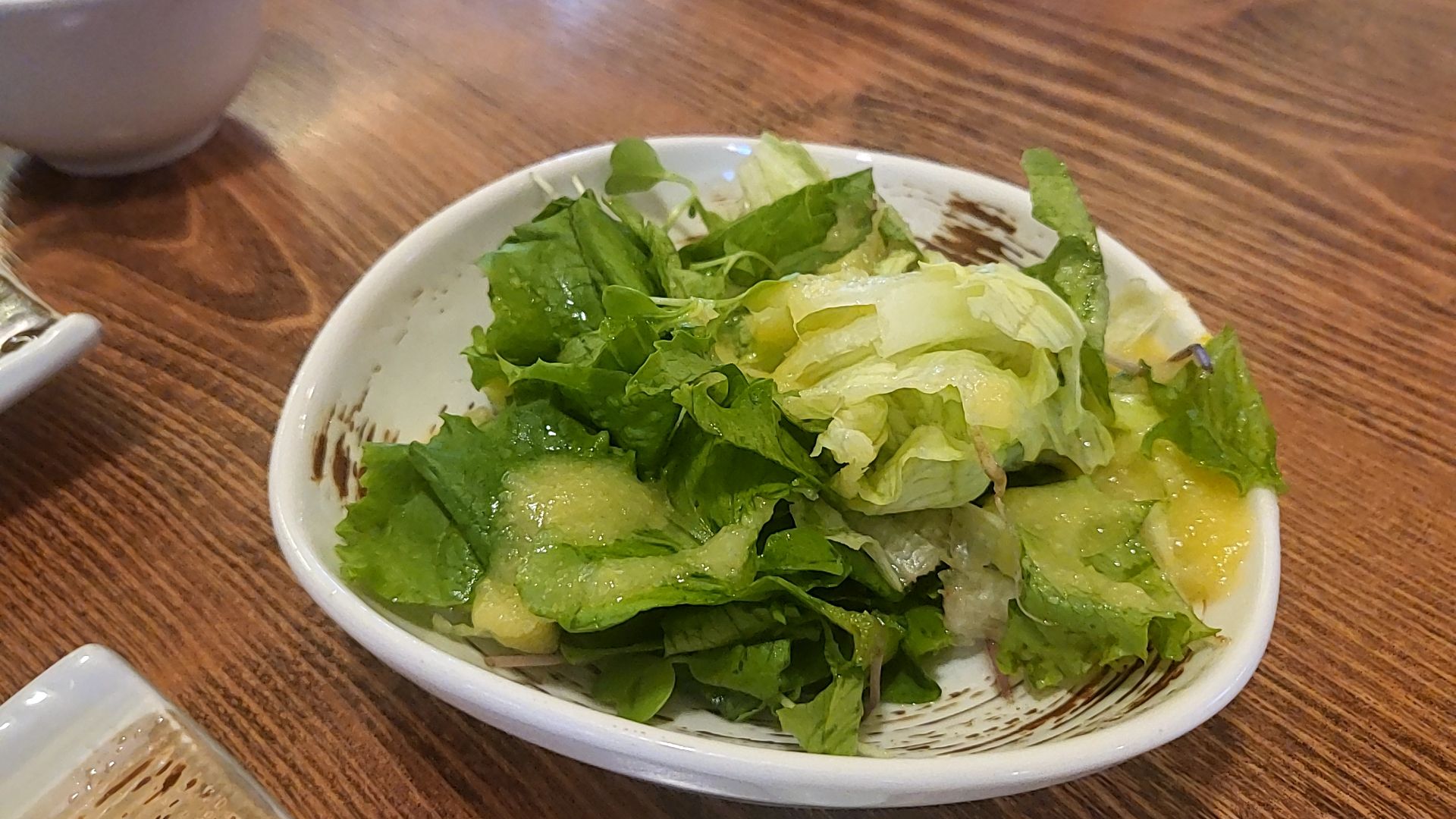 밑반찬으로는 장국, 수프와 샐러드가 나왔다.